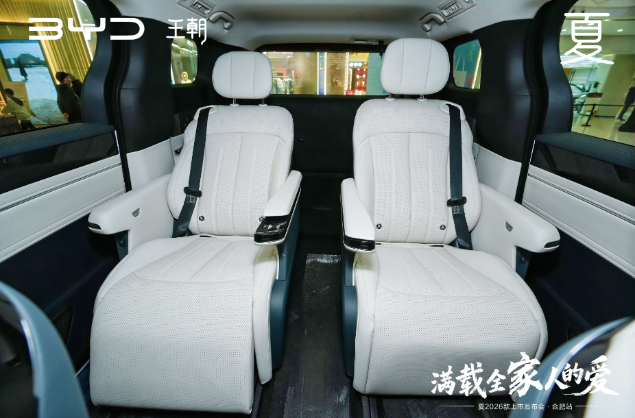 在万众期待中,比亚迪豫皖战区领导共同为2026款夏揭幕。随着幕布缓缓落下,新车在灯光下熠熠生辉,其沉稳大气的外观设计赢得现场阵阵掌声。2026款夏以超过5米的车长和3米以上的轴距,重新定义了中大型MPV的空间标准,真正实现了"三排同权"的乘坐体验。