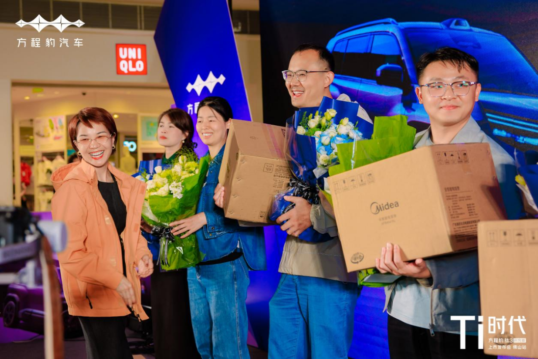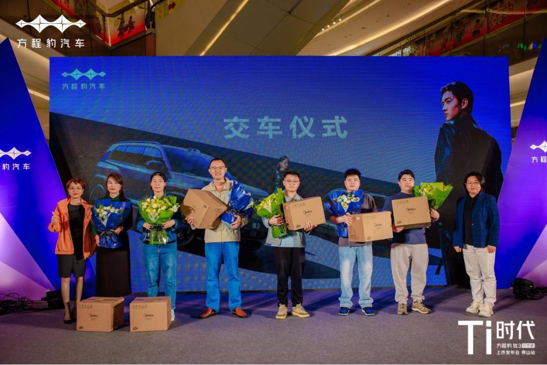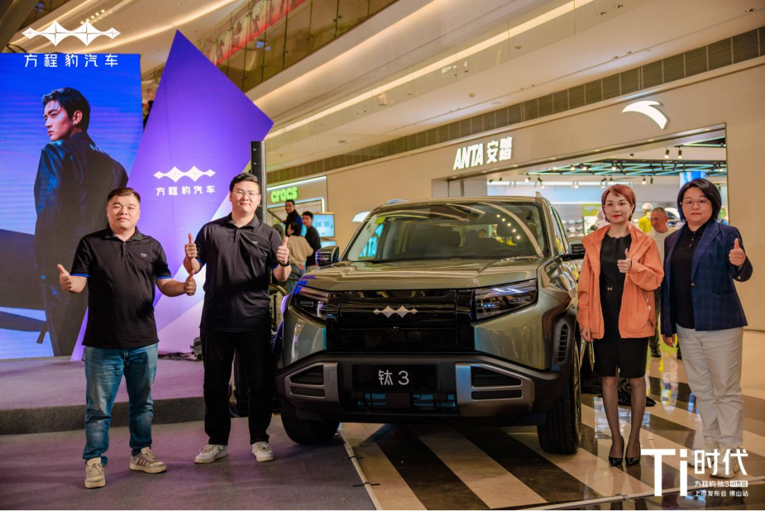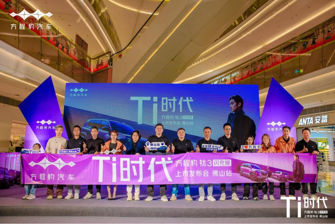 方程豹汽车粤西二区运营经理杭宇先生、方程豹佛山有道4S店总经理林皓贤先生、方程豹佛山海八路直营店总经理麦瑞芬女士和方程豹汽车佛山利兴4S店总经理谢丽媛女士,汇聚佛山本地车友、媒体嘉宾与品牌粉丝,正式宣告比亚迪闪充首款量产车型——方程豹钛3闪充版登陆佛山。